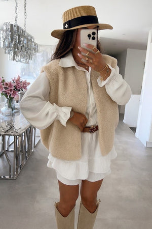 Deze teddy bodywarmer voor dames is het ultieme must-have laagje voor dit seizoen. De heerlijke zachte teddy-stof voelt super cosy aan, terwijl de verborgen zakken zorgen voor een handige en stijlvolle extra.