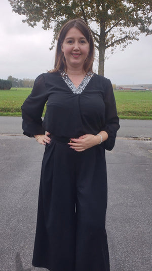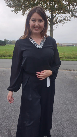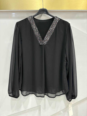 Feestelijke Blouse met V-hals en Zachte Pailletten - Zwart