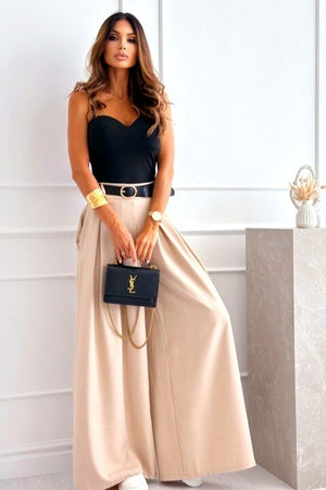 Wijde damesbroek met riem – superflaterend & comfy - Beige